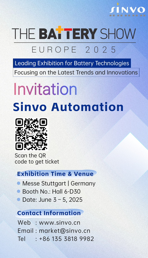In the context of the global acceleration towards new energy and intelligent manufacturing, Sinvo Automation sincerely invites you to visit The Battery Show Europe 2025 Stuttgart, Germany, the world's leading professional exhibition of battery and energy storage technology, to talk about cutting-edge technologies and explore the future of the industry.
